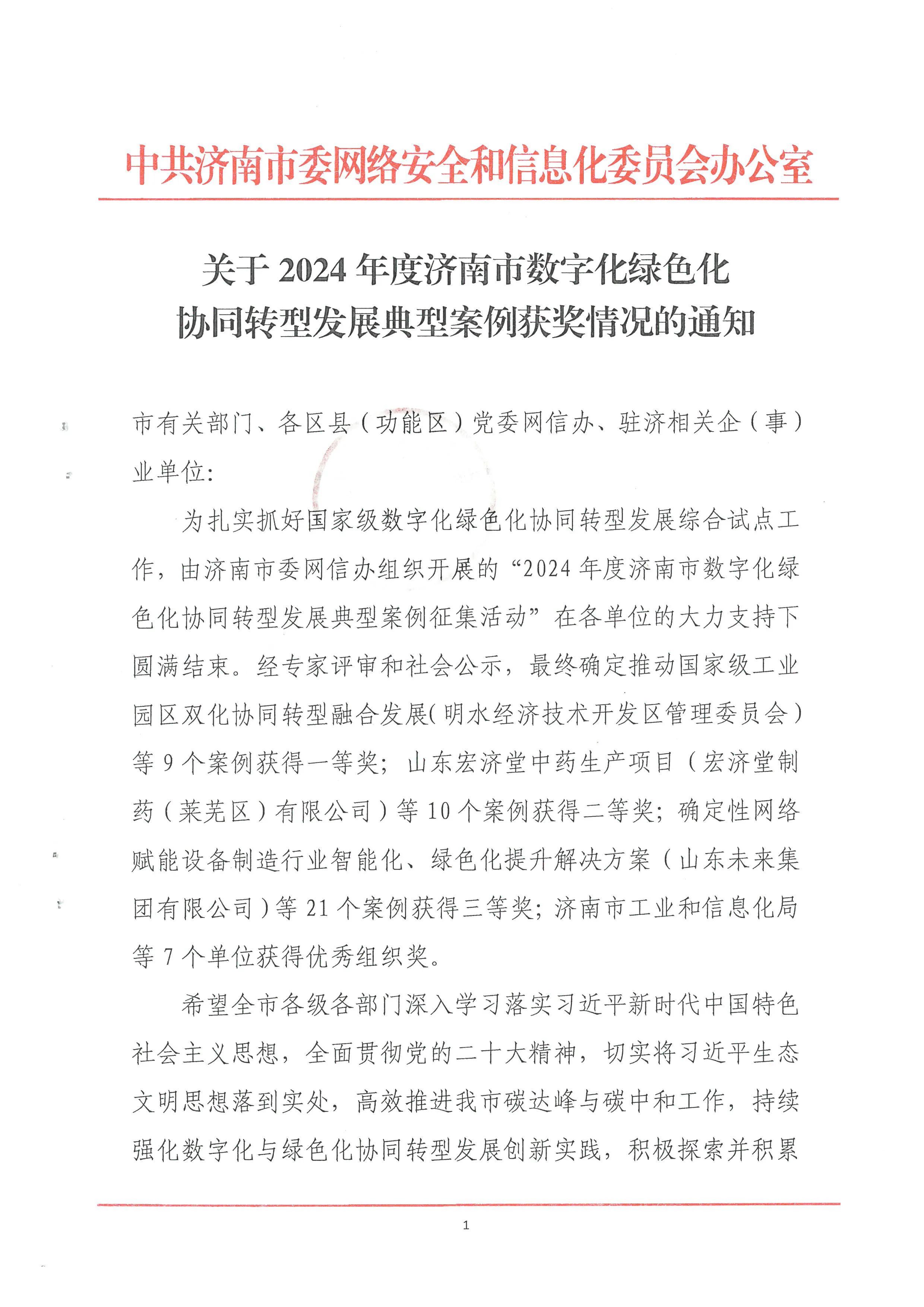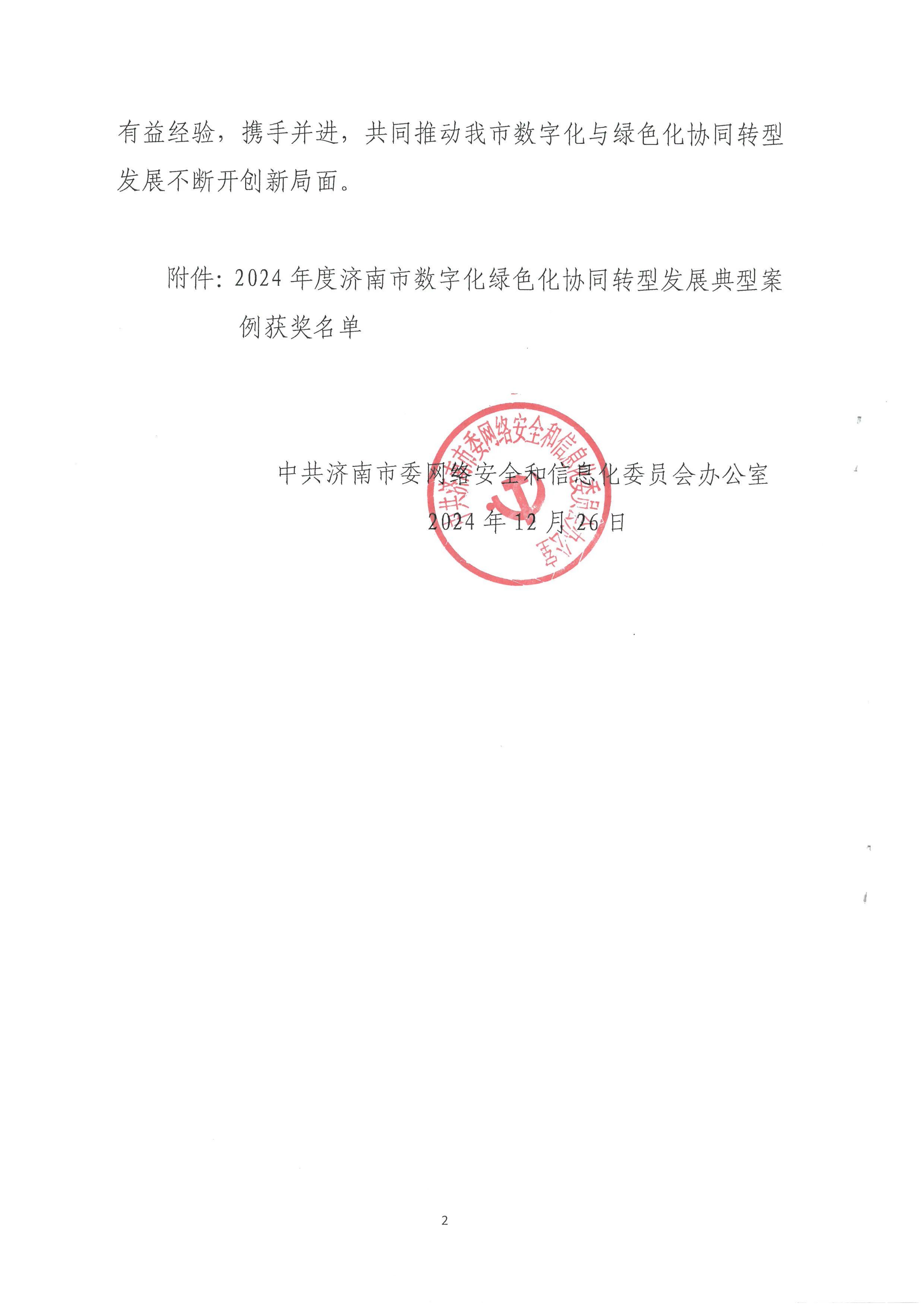 近日,济南市委网信办公布了《2024年度济南市数字化绿色化协同转型发展典型案例获奖情况的通知》。经过严格的考察、评审与公示,pg电子